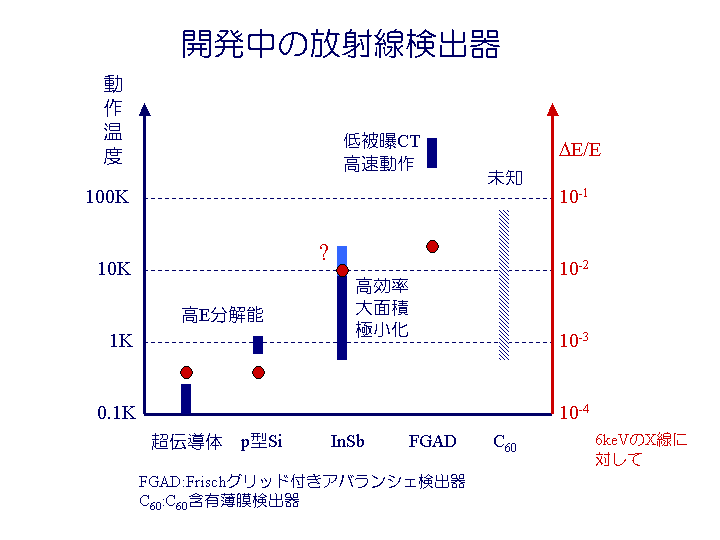 健康診断として,レントゲン写真を撮影して肺がんの検査をしています.このレントゲン検査の代わりにCT検査を行えば,悪性腫瘍,ガンの早期発見ができ,治療も簡単に行うことができます.ただし,CT検査では,X線の被曝量がレントゲン検査の100倍から1000倍くらいありますので,毎年CT検査を受診することはできません.そこで,高性能放射線検出器を開発して被曝量の少ないCT検査システムを作り,CT検査を毎年の健康診断に取り入れることを目的として,研究を行っています.
